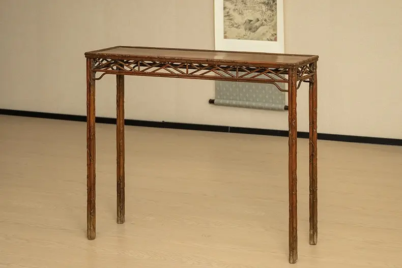 竹挺拔修长,四季不改,因其不惧霜雪的傲骨深得文人骚客喜爱。其青翠,可作园林装点;其中空,正如君子品格。条桌狭长桌面与清俊腿足的比例配合,更凸显出青竹一般遗世独立的高洁气质,这正是文人雅士毕生追求的“器以载道”。